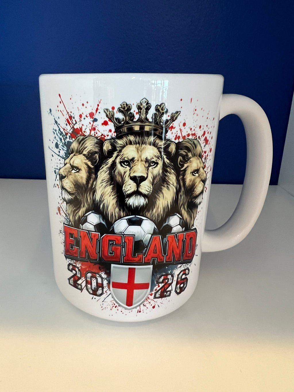 Mug 15oz Handmade Design - England Football 2026 with wood lid or coaster.