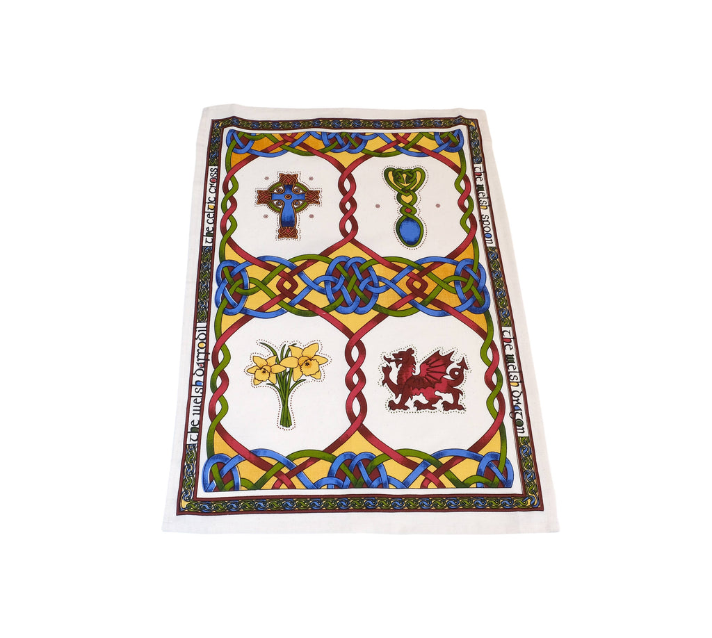 The craftsmanship of Welsh artisans really shines through with this beautiful Single Tea Towel. The intricate patterns are elegant and pleasing to the eye while offering Welsh Symbols. This product is made by Royal Tara, one of the largest giftware companies known for their design and quality of giftware products. This single Tea Towel and made from 100% cotton and is incredibly soft and super absorbent. The beautiful Tea Towel measures 75 cm in height and 50 cm in width. It is the perfect size and will be a perfect addition to any kitchen. The lively Welsh Emblem design will adorn your table beautifully. The powerful design symbolisms reflect the history of Wales in a uniquely creative design and will make your tea serving or kitchen activities more enjoyable.