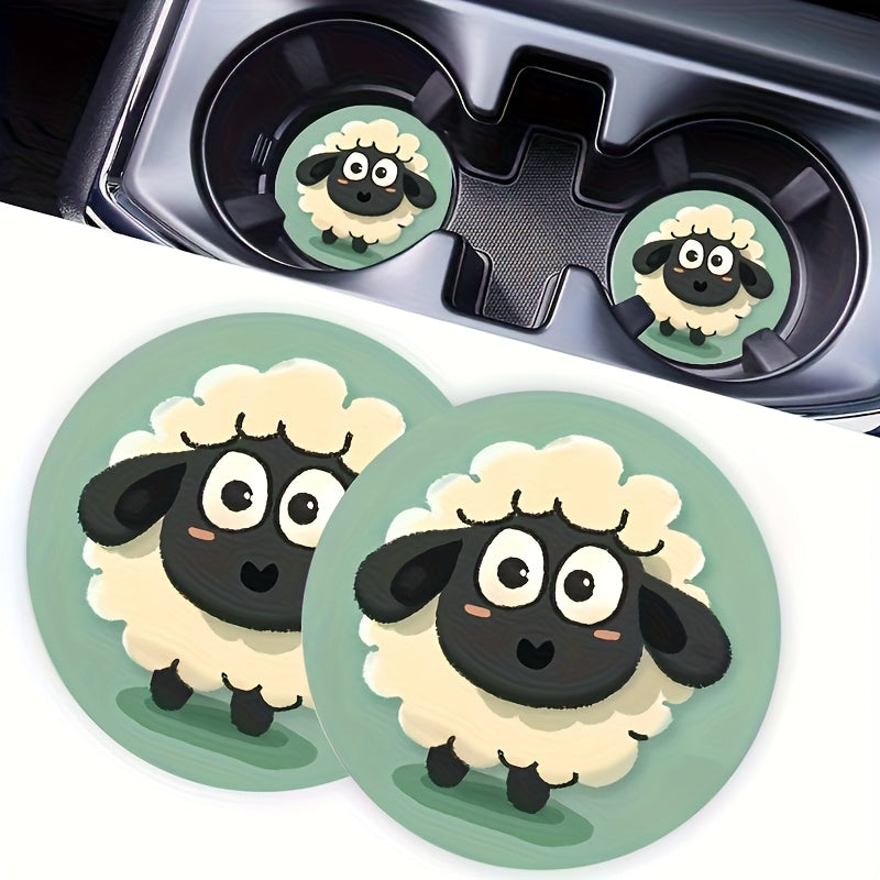 Keep your car's cup holders clean and protected with these charming sheep-themed coasters. This two-piece set features adorable sheep designs that add a touch of whimsy to your vehicle's interior. Made from durable, absorbent material, these coasters effectively prevent spills and condensation from damaging your car's surfaces. The compact size fits standard cup holders perfectly, while the non-slip backing ensures they stay securely in place during drives. An ideal accessory for sheep enthusiasts and anyone seeking practical, decorative car organization.
