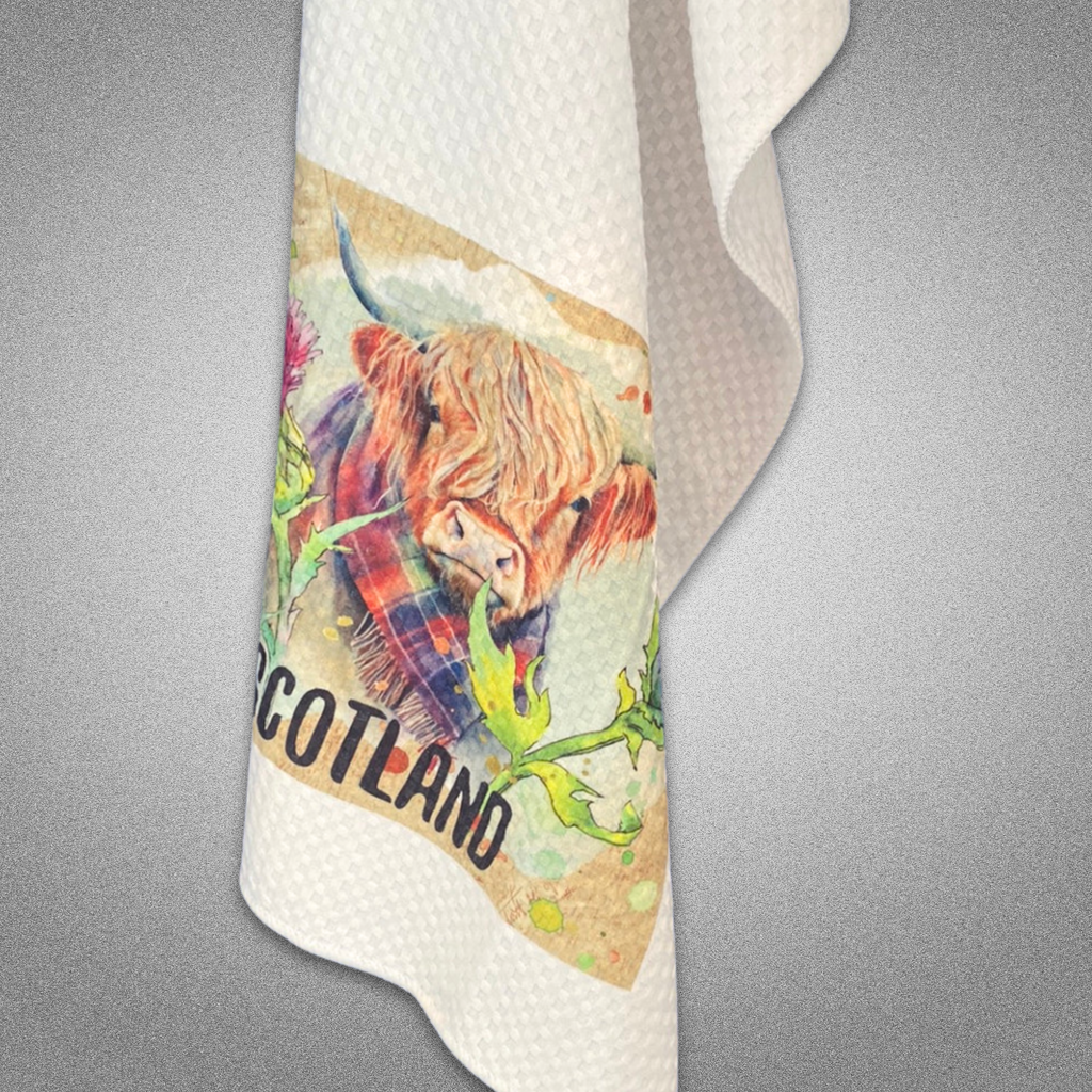 Add a unique touch to your kitchen with our Custom Made Scottish Highland Coo Tea Towel. Made from high-quality materials, this tea towel features a beautiful print of the iconic Scottish Highland Coo. Its absorbent and durable fabric makes it perfect for drying dishes or hands. Bring a piece of Scotland into your home with this one-of-a-kind tea towel.